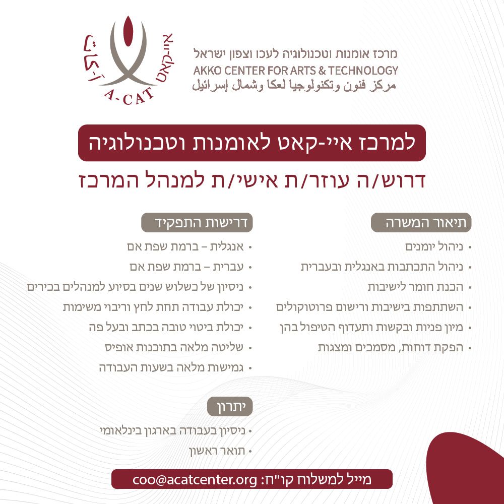 מייל למשלוח קורות חיים: coo@acatcener.org